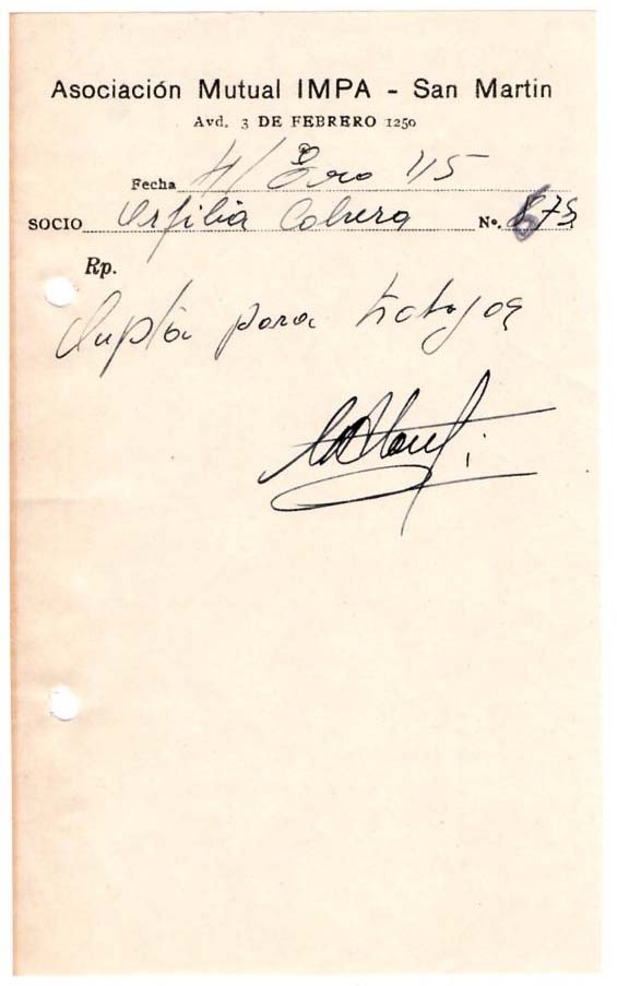 Orfilia Cabrera trabajó como obrera de la fábrica IMPA durante la Etapa 1 de empresa privada (1928-1945).
