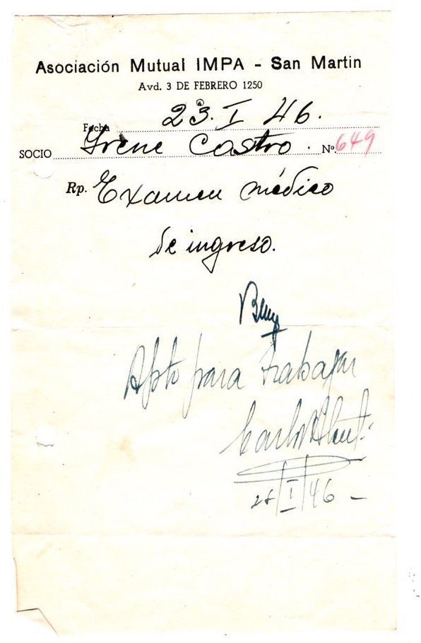 Irene Castro trabajó solo cinco días como obrera de la fábrica IMPA durante la Etapa 1 de IMPA como empresa privada (1928-1945)